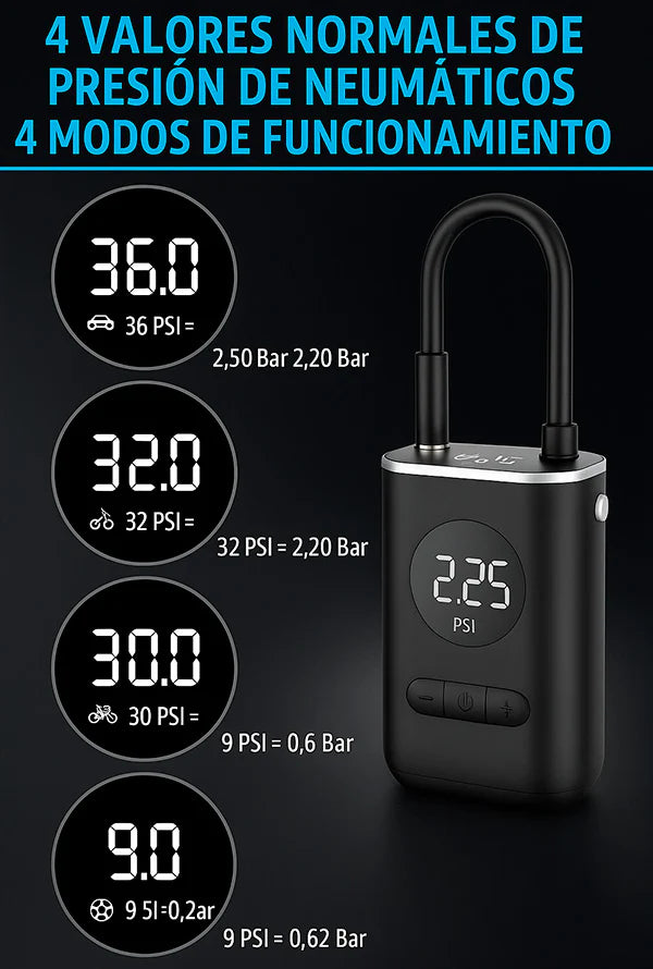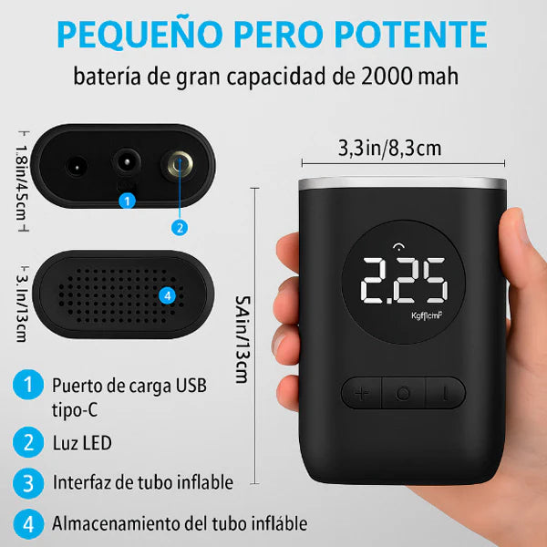 Con el Inflador Portátil Inteligente AirMax Pro, puedes olvidarte de los contratiempos.